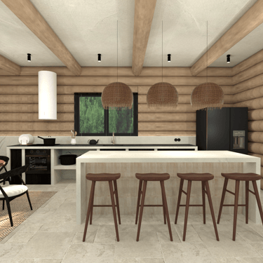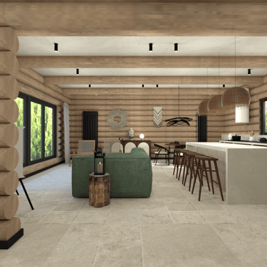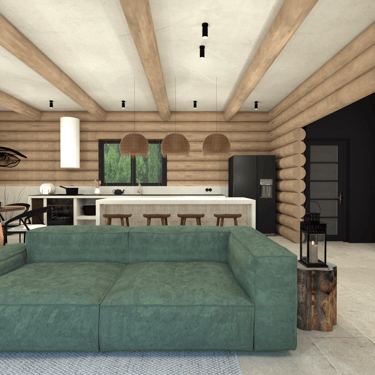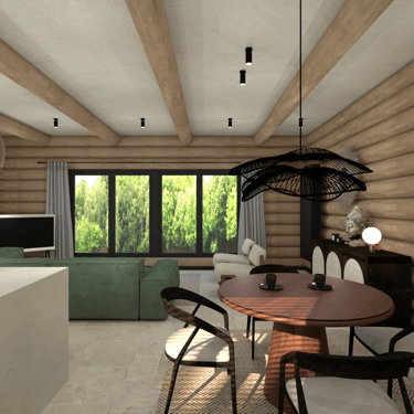 Rąstinės sodybos rekonstrukcijos projektas. Sodyba rekonstruojama iš pagrindų, pritaikant ją gyvenimui tiek šaltuoju, tiek šiltuoju sezonų metu. Atnaujinama šildymo sistema, naujai formuojami langai, keičiamas vidaus išplanavimas, visos apdailinės dangos. Siekėme sukurti jaukų, šiek tiek egzotišką interjerą kuris papildytų nuostabios gamtos vaizdus pro sodybos langus, tuo pačiu metu būtų praktiškas ir komfortiškas.