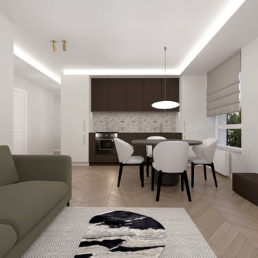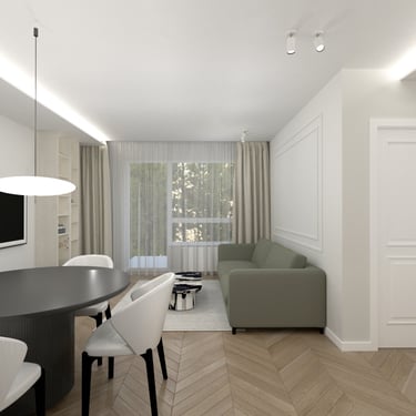 Naujos statybos būstas įrengiamas nuomai. Projekto lokacija diktavo būsimų gyventojų paveikslą - vertinantis rajono ramybę, gyvenamosios vietos prialumus bei kokybę. Siekėme įrengti patogų bei praktišką būstą su klasikiniais akcentais.